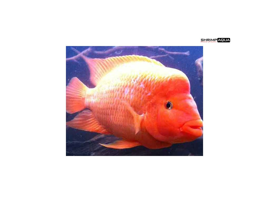 Zbarvení je velmi variabilní (nejčastěji jsou oranžové), existují také exempláře červené, růžové i bílé, bývají ale také formy šedé nebo skvrnité. Vytrvalá, ale mimořádně agresivní ryba. Potřebuje v akváriu místo, pro vytvoření svého teritoria. Je to vytrvalá ryba, která není příliš choulostivá na parametry vody. Jako u většiny cichlid je však dobré udržovat akvárium v čistotě a zajistit dobrou filtraci vody. Proudění vody jen mírné, vzduchování není potřeba. Rostliny volíme raději tuholisté a dobře zakořeněné a upevněné, jinak je mohou ze substrátu vyhrabat. Dno by mělo být písčité nebo velmi drobný štěrk, který nesmí být ostrý.